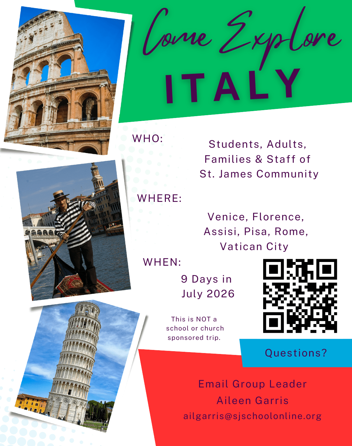 - There is still time!!! We have a few spots remaining on the Italy Trip if you are interested see here (this is not a school sponsored trip)