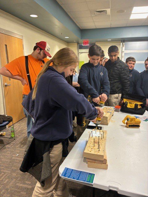 Today our eighth grade students visited EC3 to explore all it has to offer. Immediately when arriving on the EC3 campus, the students were met by a familiar face as their tour guide was SJS alum AJ Garris (2022). As a current student at EC3, AJ was a great resource to provide a tour and answer questions the students had about all of the different demonstrations to which they were exposed. The students left with an understanding that there are many career pathways that begin at EC3 and well worth considering along with other high school options.